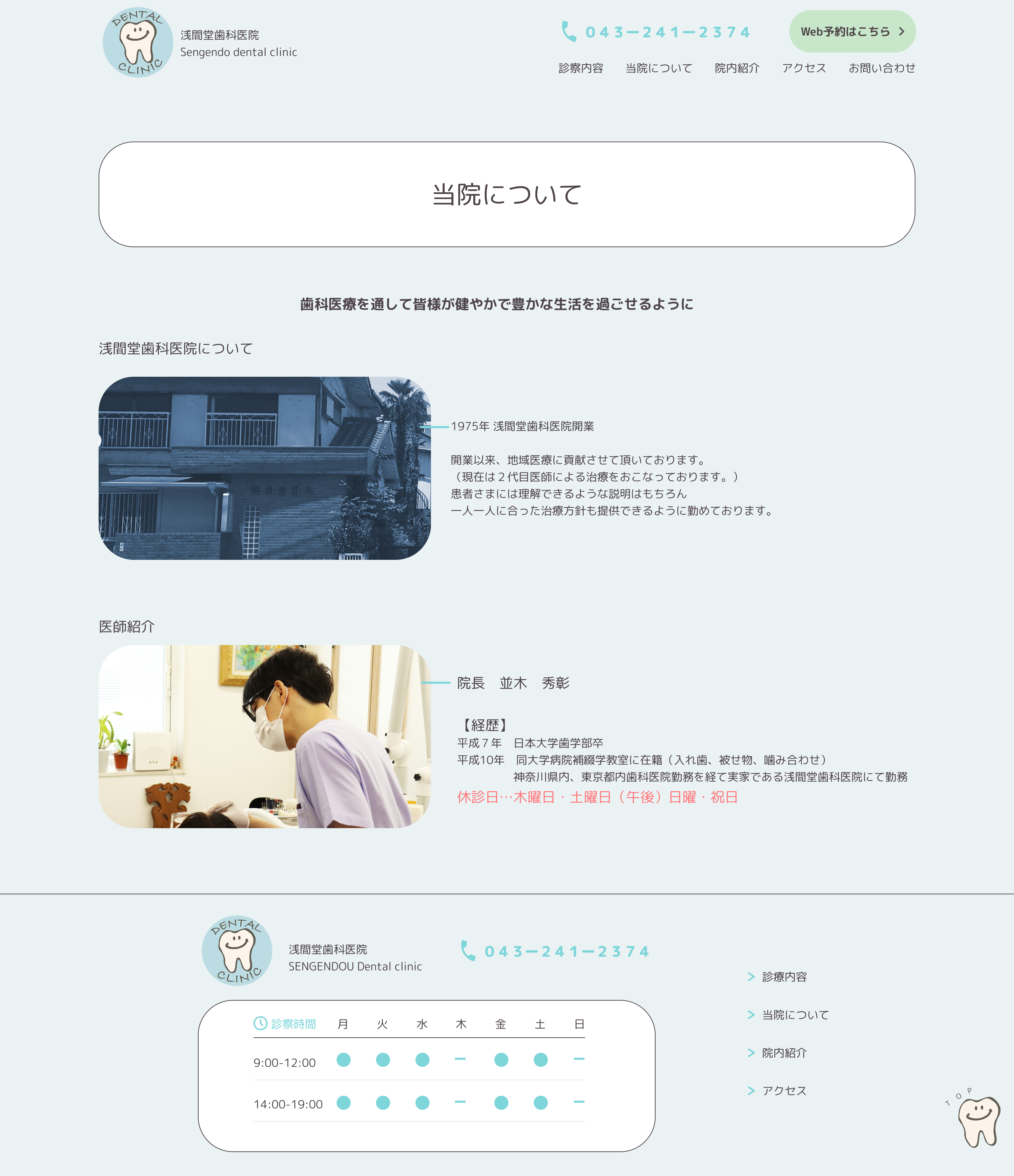 地域密着型の歯科医院「浅間堂歯科医院」の公式サイトを新規制作。 患者が安心して来院できるよう、清潔感・信頼感・やさしさをテーマにデザインを構築